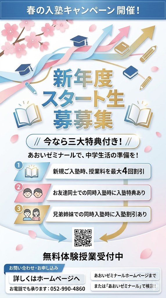 学校がいよいよ本格的にスタートしましたね!≪猪子石中・香流中・千種中学区 個別指導塾 あおいゼミナール≫