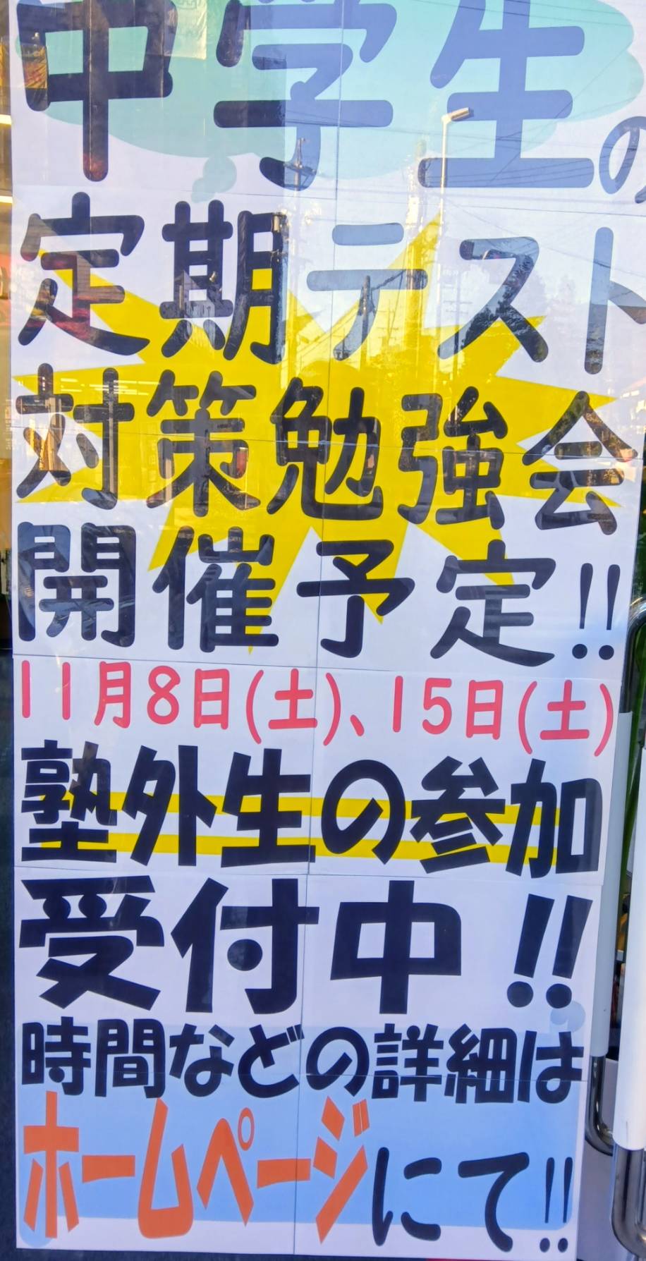テスト対策勉強会のお知らせ≪猪子石中・香流中・千種中学区 個別指導塾 あおいゼミナール≫